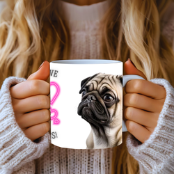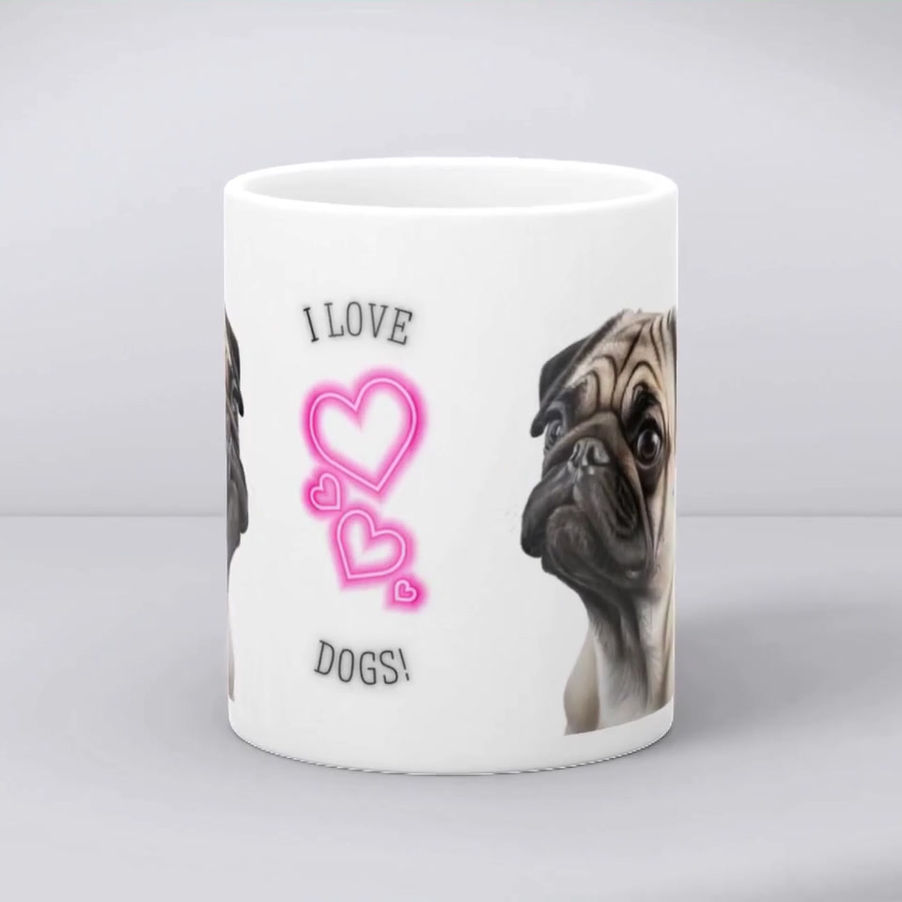 Introducing our adorable Pug - I Love Dogs mug! This ceramic mug features a charming illustration of a pug with the text "I Love Dogs" in a fun, whimsical font. Whether you're a pug owner or just a dog lover, this mug is the perfect way to show off your affection for these lovable little pups. This mug holds 11oz of your favorite hot or cold beverages and is dishwasher and microwave safe for easy cleaning and reheating. Treat yourself or the pug lover in your life to this adorable mug that is sure to bring a smile to their face every time they use it.