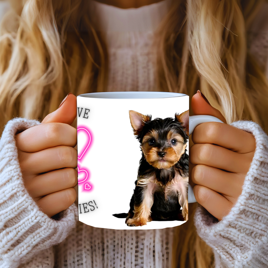 Introducing the Yorkshire Terrier - I Love Puppies mug, the perfect way to show off your love for these adorable little dogs. This high-quality ceramic mug features a sweet illustration of a Yorkshire Terrier puppy with the words "I Love Puppies" printed in a fun and playful font. The 11-ounce size is perfect for enjoying your morning coffee or tea, and the durable design ensures that this mug will withstand daily use. Whether you're a proud Yorkie owner or just a fan of this lovable breed, this mug is a must-have addition to your collection. Treat yourself or gift it to a fellow Yorkshire Terrier enthusiast and spread the puppy love!